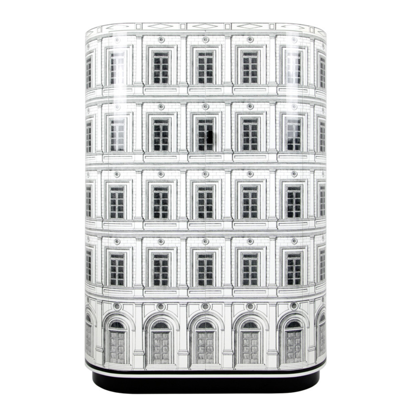Questo mobile contenitore dalle forme smussate ed eleganti è subito divenuto uno dei classici più apprezzati di sempre. Serigrafato e laccato a mano, è impreziosito dal decoro di un sobrio palazzo neoclassico.
