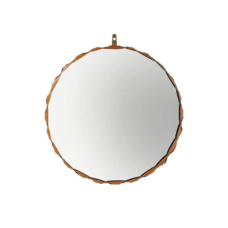 Specchio con Bordo in Cuoio. Diametro 105 cm.