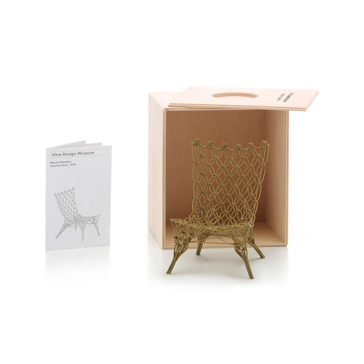 La sedia annodata è realizzata con una rete annodata imbevuta di resina artificiale e semplicemente stesa ad asciugare. Ciò produce un guscio del sedile altamente espressivo che è fragile, trasparente e leggero come un'amaca ma è solido come dovrebbe essere un sedile. L'uso di semplici corde annodate conferisce a Knotted Chair un'ulteriore "calda" sensazione personale.