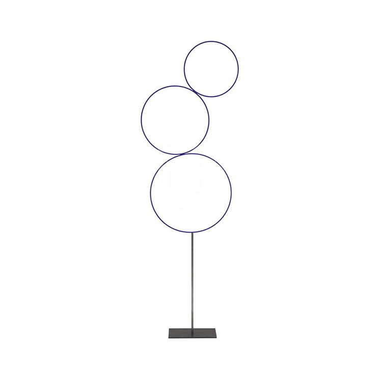 base e struttura verniciati nero, anelli in rame dipinti a mano blu, cavi blu, dimmer nero