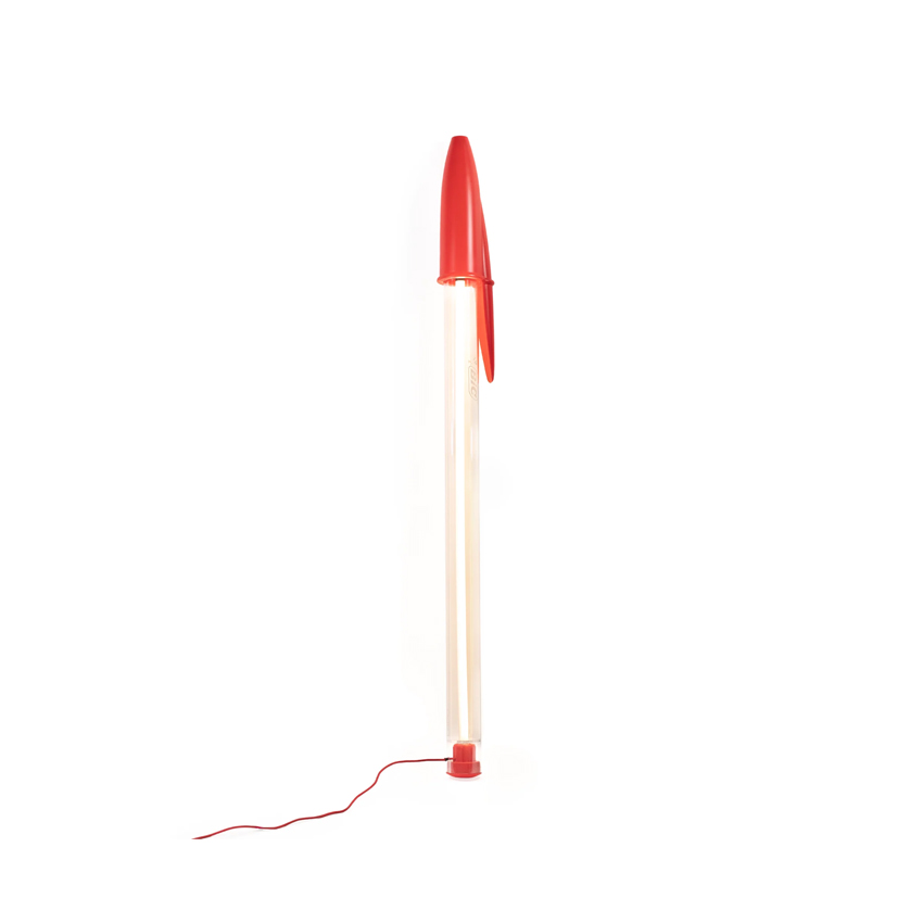 BIC® Lamp reinterpreta la leggendaria BIC® Cristal in scala 12:1 nelle sue tre versioni più riconoscibili - i classici nero, blu e rosso - come lampada da terra, lampada a sospensione o applique. Realizzata con materiali scelti per evocare l'originale con la massima precisione, garantendo al contempo prestazioni luminose ottimali, questa lampada celebra uno degli oggetti più diffusi e amati al mondo.