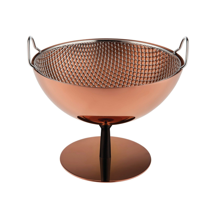 Fruttiera/scolatoio in acciaio inossidabile 18/10 con rivestimento in PVD, rame. Piede in alluminio, antracite. Serie limitata a 999 pezzi numerati.