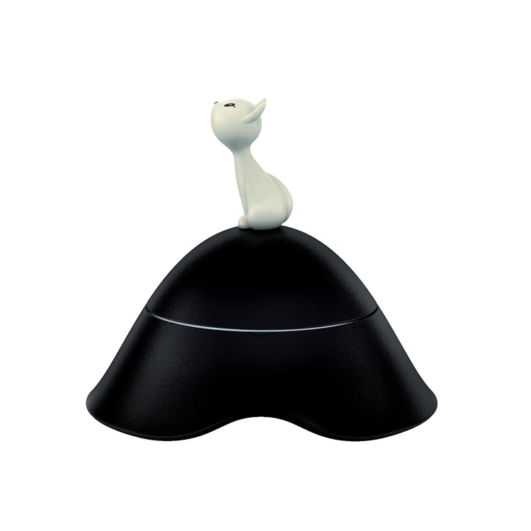 Ciotola per gatti con coperchio in resina termoplastica, nero. Coppa in acciaio inossidabile 18/10 lucido.
