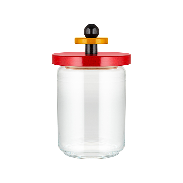 Ettore Sottsass rilegge un classico della cucina con il suo inconfondibile linguaggio di colorati volumi sovrapposti. Il barattolo ideale per conservare alimenti secchi come riso, pasta, biscotti, oppure in polvere come zucchero, sale e caffè. Il corpo in vetro e la chiusura ermetica mantengono intatti il sapore e l’aroma dei prodotti.