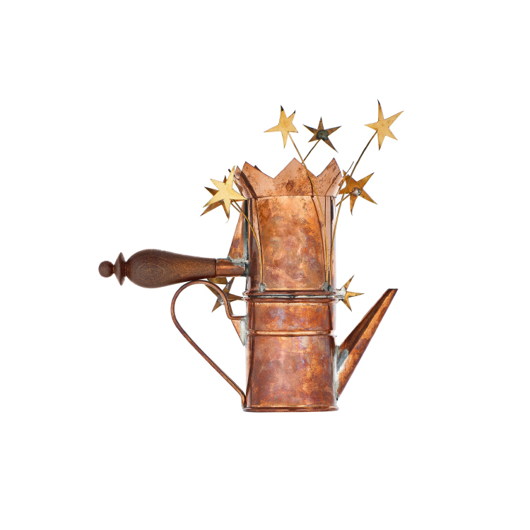 Disegnata da Riccardo Dalisi, La Caffettiera con cuore e stelle è un’incantevole opera tra arte e progetto che celebra uno degli esempi più brillanti di atteggiamento poetico nel design. È la riproduzione di uno degli oltre duecento prototipi realizzati da Dalisi durante l’iter progettuale che, negli anni ’70, ha portato alla produzione della sua caffettiera napoletana: uno diverso dall’altro e via via sempre più espressivi, fino al punto di perdere il loro aspetto funzionale ascendendo a un livello di pezzo d’arte.