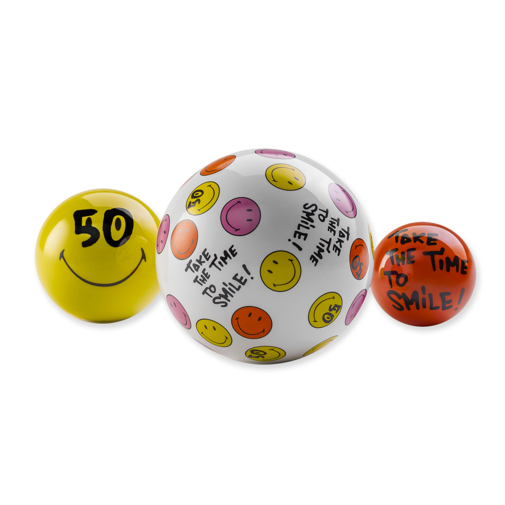 Le piccole sculture "sorridono" grazie ai colori accesi e alle divertenti grafiche di André Saraiva per il 50° Anniversario di Smiley.