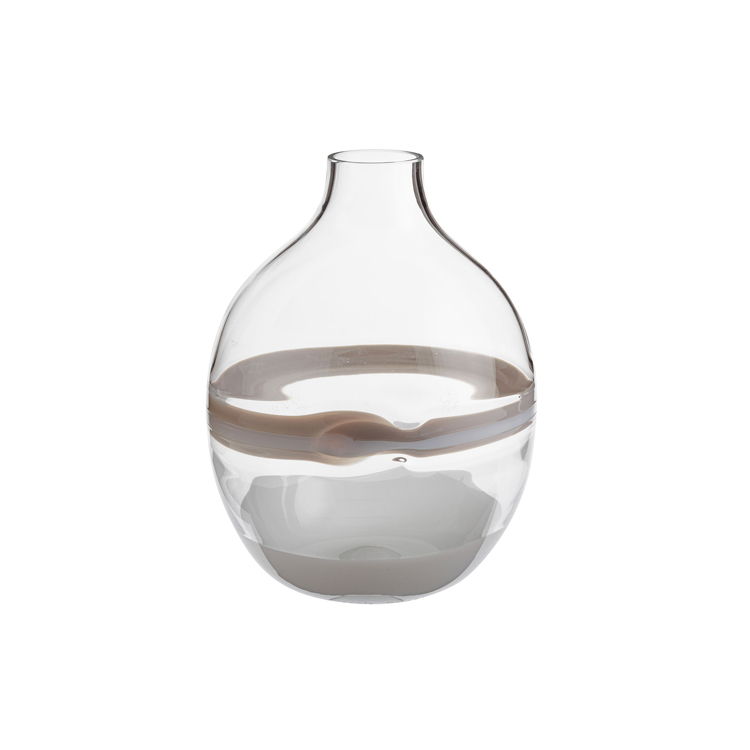 Vaso in Cristallo di Murano soffiato a bocca e rifinito a mano con diversi motivi decorativi applicati a caldo: murrina, cannette, festoni, puntini, striature, anelli e spirali colorate, trasparenti e opachi. Firmato e datato.