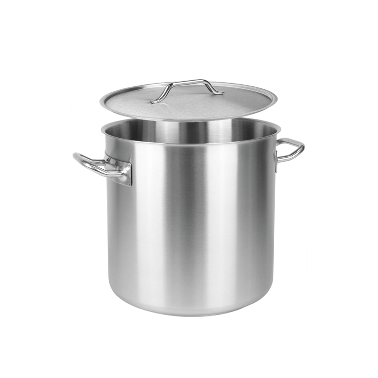 Grande pentola in acciaio inossidabile 18/10, in finitura spazzolata, di grande volume con Coperchio.