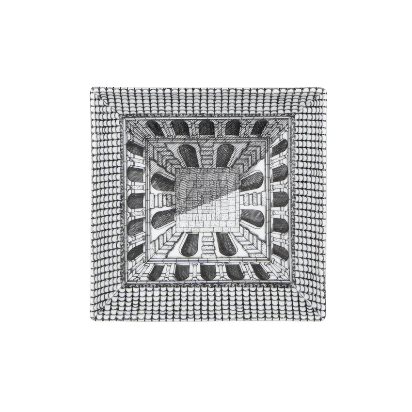 L'architettura è un campo molto amato da Fornasetti per i suoi decori, come dimostra questo piatto quadrato in porcellana decorata a mano. Lo potrai utilizzare con funzione ornamentale per l'arte della tavola. Per la pulizia si raccomanda l'utilizzo di un panno umido senza detergente.