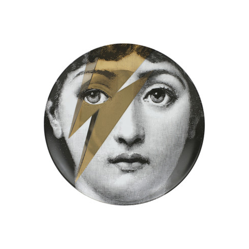 Gli inconfondibili lineamenti di Lina Cavalieri, giocosamente reinterpretati da Fornasetti, sono l'ispirazione della serie Tema e Variazioni, di cui questo piatto in porcellana decorato a mano con inserti in oro fa parte: un vero pezzo da collezione, che potrai utilizzare come piatto da parete, grazie alla presenza di due fori sul retro, ma anche con funzione ornamentale per l'arte della tavola. Per la pulizia si raccomanda l'utilizzo di un panno umido senza detergente.