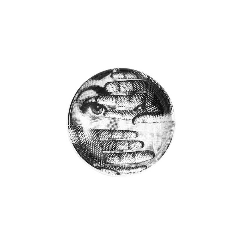 Il volto della cantante lirica Lina Cavalieri, reinterpretato da Piero Fornasetti, impreziosisce questo posacenere decorativo in porcellana decorato a mano, facente parte dell'iconica serie Tema e Variazioni: un oggetto quotidiano diviene così un vero pezzo da collezione.