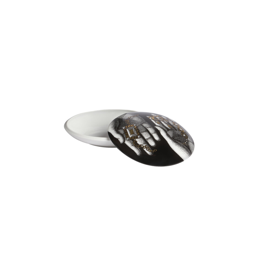 Le scatole portagioie di Fornasetti sono piccoli oggetti in porcellana decorata a mano dal carattere unico.