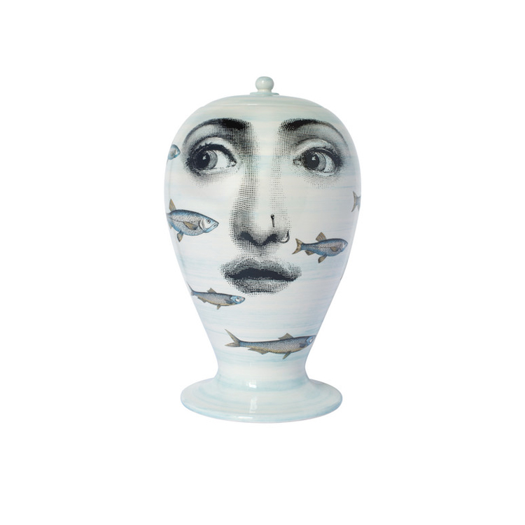 Gli iconici lineamenti di Lina Cavalieri, giocosamente reinterpretati da Fornasetti, sono l'ispirazione della serie Tema e Variazioni, di cui questo vaso in ceramica decorato e dipinto a mano fa parte: un vero pezzo da collezione.