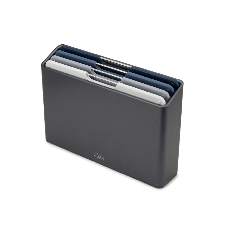 Questo set comprende quattro taglieri codificati a colori che possono essere tenuti splendidamente organizzati nella loro elegante e sottile custodia.