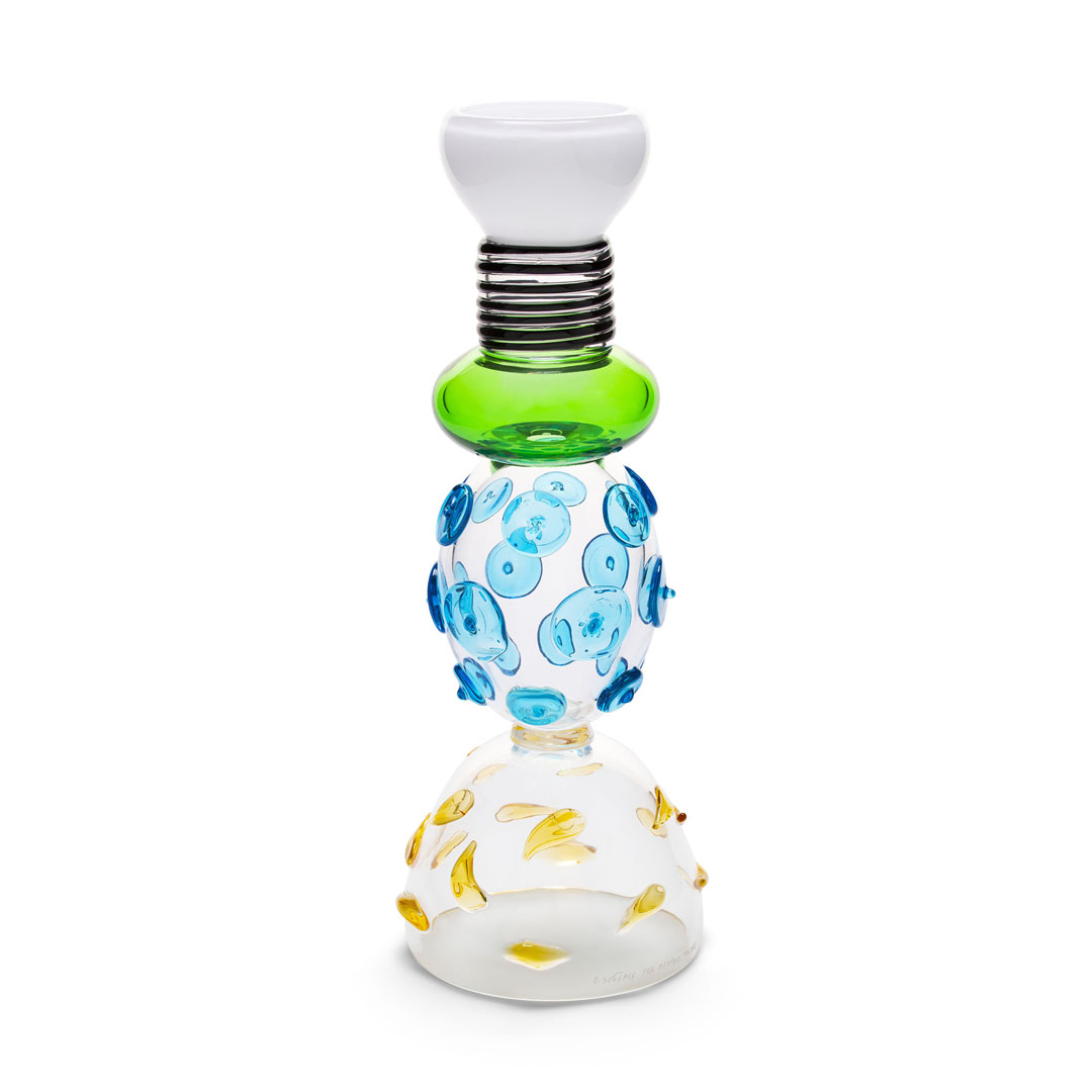 Vaso decorativo in vetro di Murano lavorato a mano con le tradizionali tecniche di soffiatura a bocca libera e a stampo.