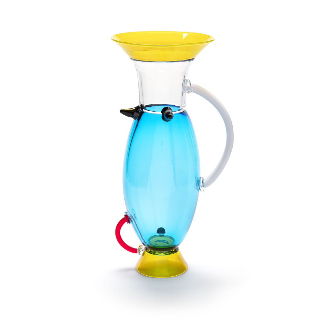 Vaso decorativo in vetro di Murano lavorato a mano con le tradizionali tecniche di soffiatura a bocca libera e a stampo.
