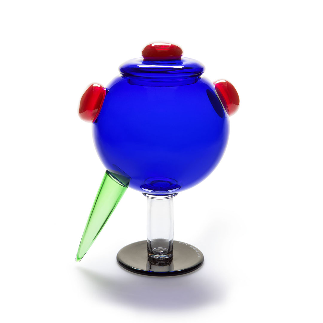 Vaso decorativo in vetro di Murano lavorato a mano con le tradizionali tecniche di soffiatura a bocca libera e a stampo.