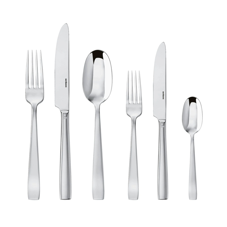 6 cucchiai tavola, 6 forchette tavola, 6 coltelli tavola, 6 forchette frutta, 6 coltelli frutta, 6 cucchiaini tè - tipo di manico: Monoblocco