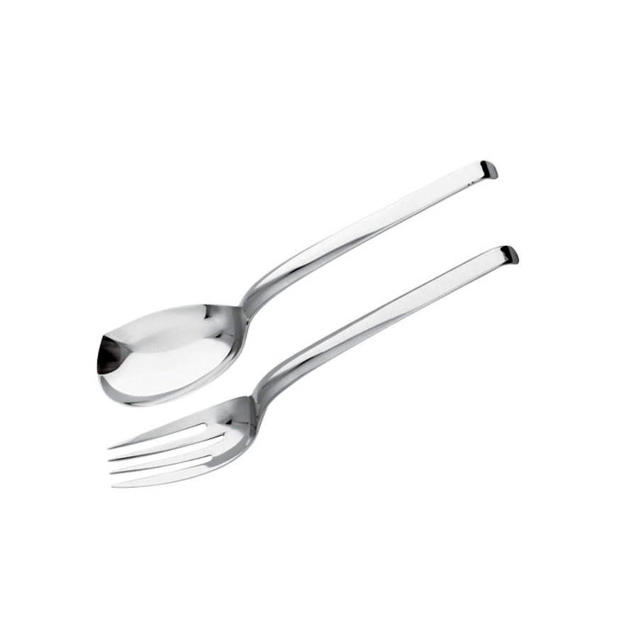 Set di due posate per servire, realizzato in acciaio inox. Lunghezza forchetta 29,5 cm, lunghezza cucchiaio 30 cm.