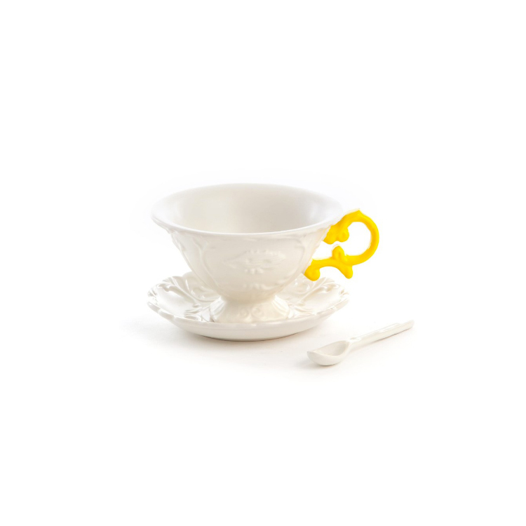 Tazza da te + piattino + cucchiaino Design: Selab Materiale: Porcellana Dimensioni: ø cm 13 h. 7