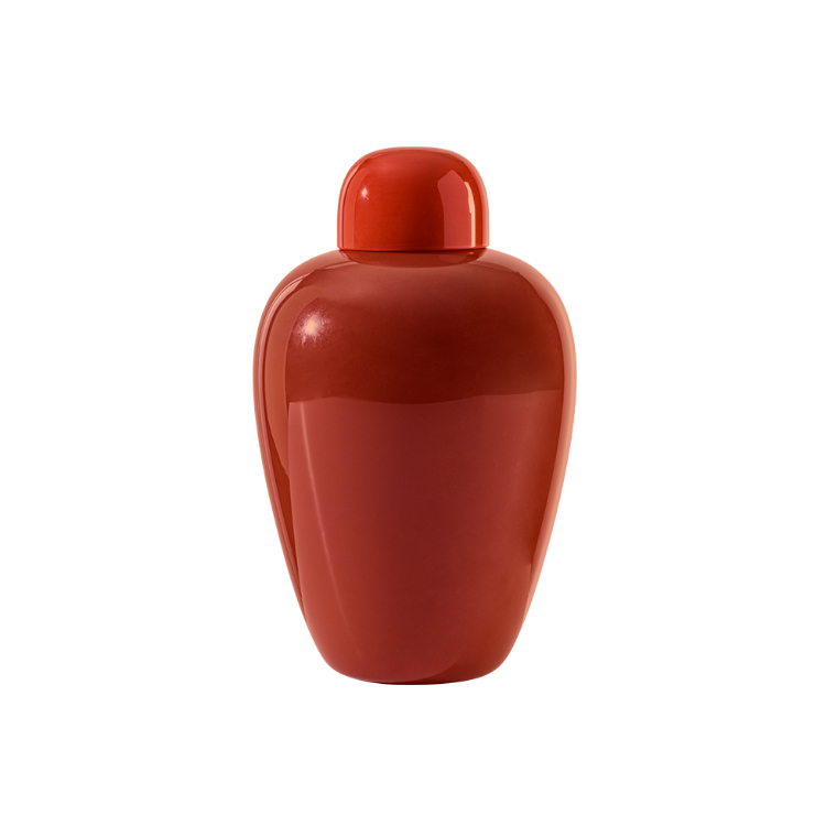 Ottenuto dalla sovrapposizione del lattimo con altri vetri, il vetro opalino è soffiato e lavorato a mano.