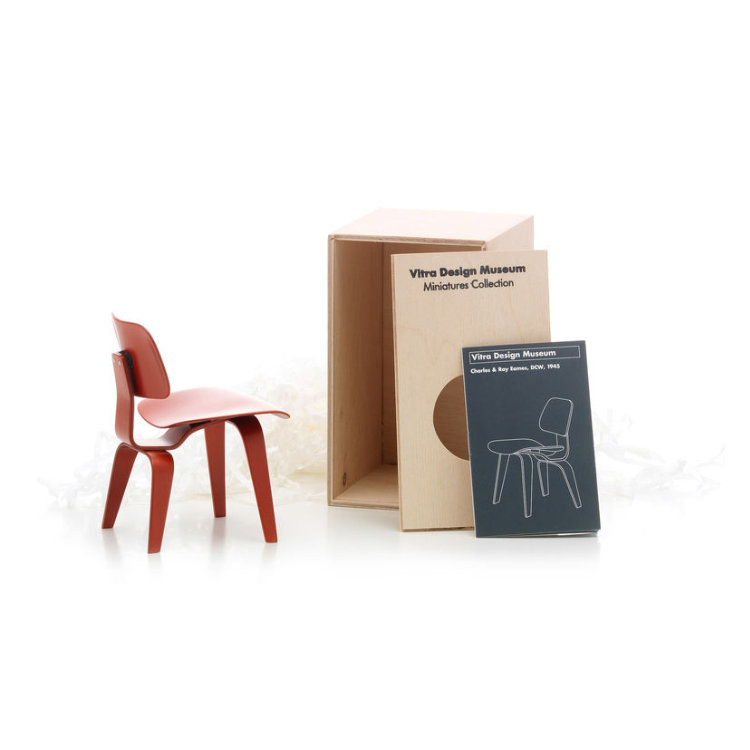 Le sedie in compensato DCW (Dining Chair Wood) e LCW (Lounge Chair Wood) sono il risultato di questa sperimentazione a lungo termine. Nel 1945, Charles e Ray Eames tornarono all'idea di una scocca in compensato sagomato; tuttavia i risultati sono stati insoddisfacenti. Hanno fatto a meno della scocca multifunzionale e hanno diviso la seduta e lo schienale in elementi separati, liberamente articolati, collegati da una spina dorsale (telaio). Ogni elemento ha una funzione chiaramente definita, che soddisfa in modo ottimale con una quantità minima di materiale. »Shock mount« – dischi di gomma incollati sulla superficie in legno – collegano il sedile e lo schienale con il telaio, che esiste in legno o metallo e in due diverse altezze, sia come sedia da pranzo che come sedia lounge.