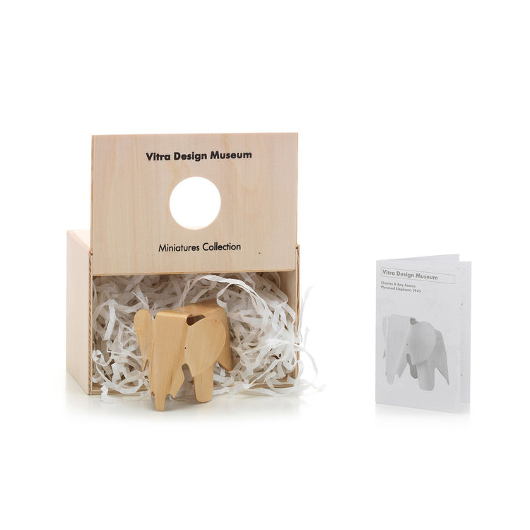 L'elefante in compensato occupa un posto di rilievo tra i pezzi in compensato progettati dagli Eames. All'inizio degli anni '40 Charles e Ray Eames svilupparono con successo un metodo innovativo per modellare il compensato in forme tridimensionali, che utilizzarono per produrre un'ampia gamma di mobili e oggetti scultorei. Tra i primi modelli in compensato, l'Elefante è uno dei più difficili da produrre. Angoli stretti e curve composte richiedono una sofisticata padronanza della tecnologia del compensato.