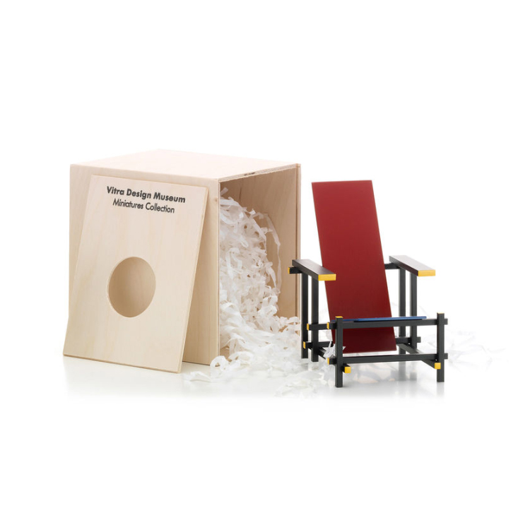 Gerrit Rietveld ha concepito ogni mobile come una composizione ideale e astratta di superfici e linee nello spazio. Il rigore con cui lo mette in pratica fa di »Roodblauwe stoel« un oggetto chiave nel design del mobile moderno. La forma di astrazione che Rietveld adotta qui è paragonabile al pittore Piet Mondrian.