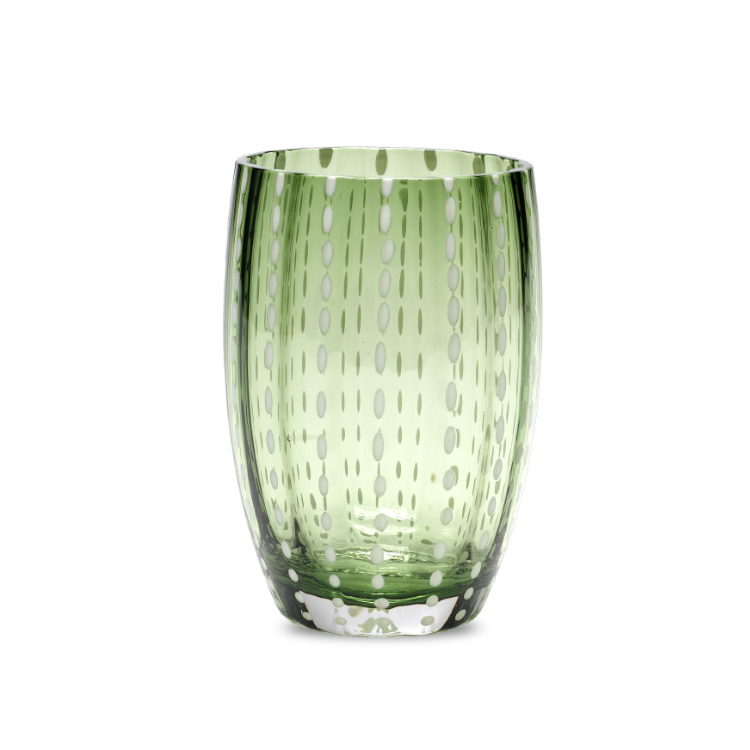 Bicchiere in Vetro fatto a mano. Colore Verde Corsa Inglese. Dimensioni: 109 x 77 mm.