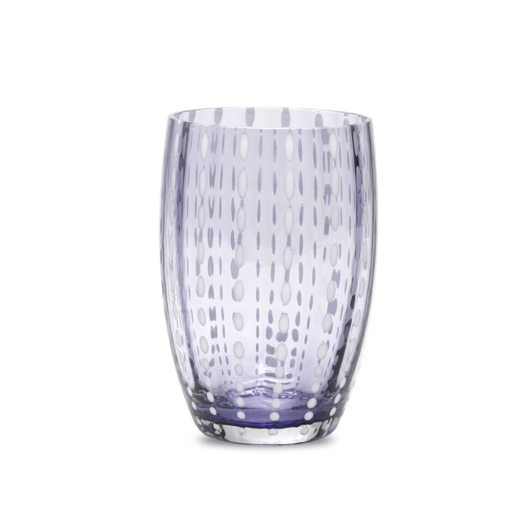 Bicchiere in Vetro fatto a mano. Colore Lavanda. Dimensioni: 109 x 77 mm.
