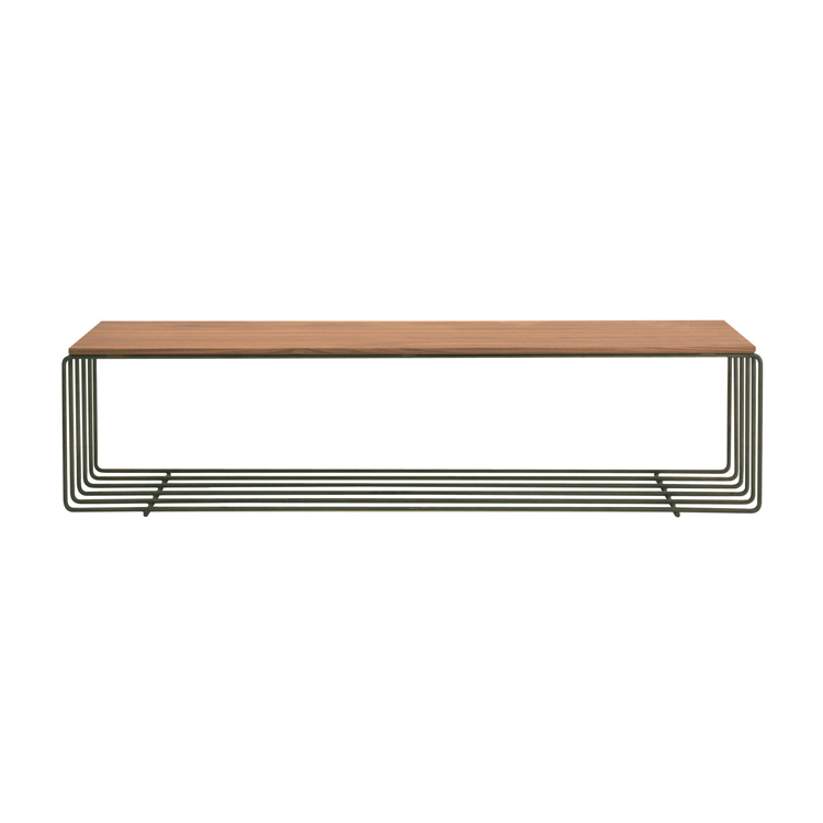 Bench with metal frame and walnut finish. Dimensions: 160 x 37 x 42 cm.