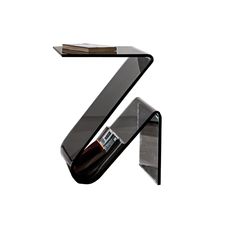 Portariviste in vetro curvo trasparente extrachiaro o fumé.