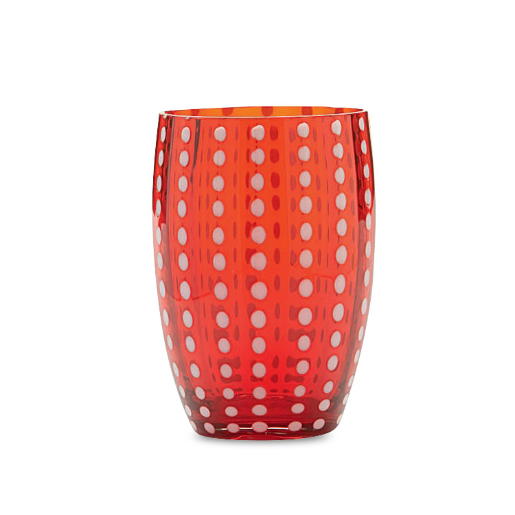Bicchiere in Vetro fatto a mano. Colore Rosso. Dimensioni: 109 x 77 mm.